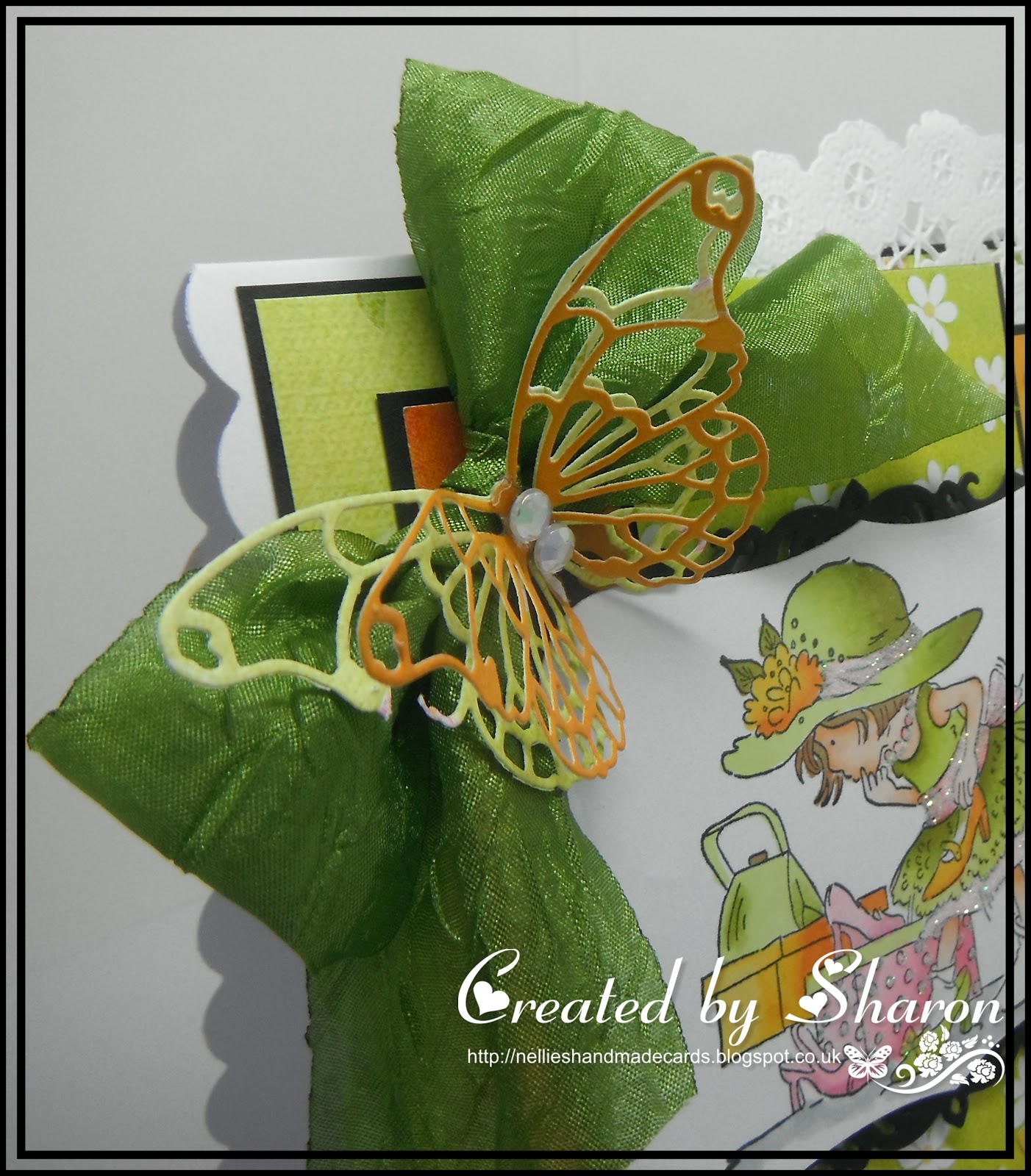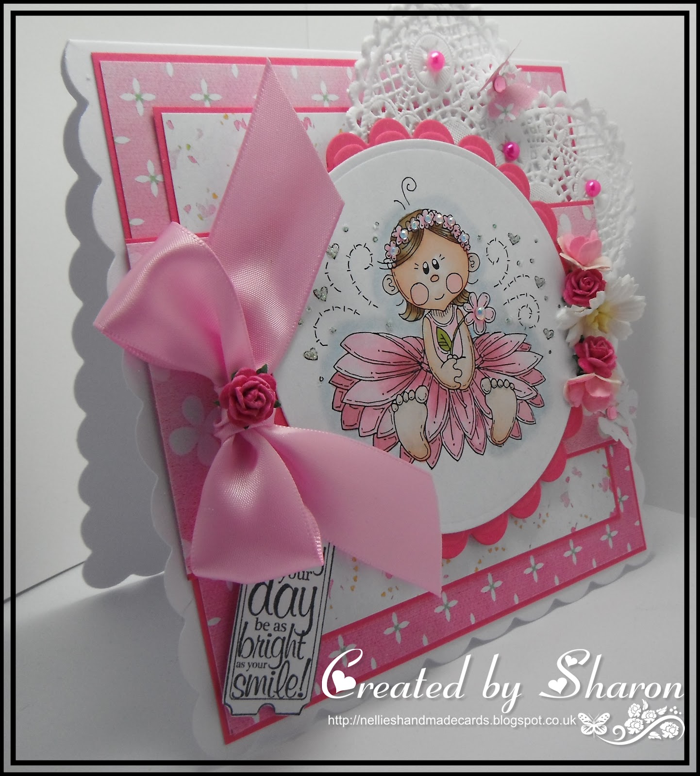 The ribbon, lace and gem on the bow are from my own stash.